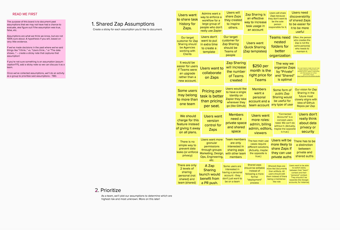 We recently did this activity on my product team at Zapier—we uncovered an assumption about a new feature we were preparing to launch that we were fairly certain about, but if we got it wrong could be costly. As a team, we decided that research was needed in that area, and have started incorporating ways to uncover the answer in our current research projects.